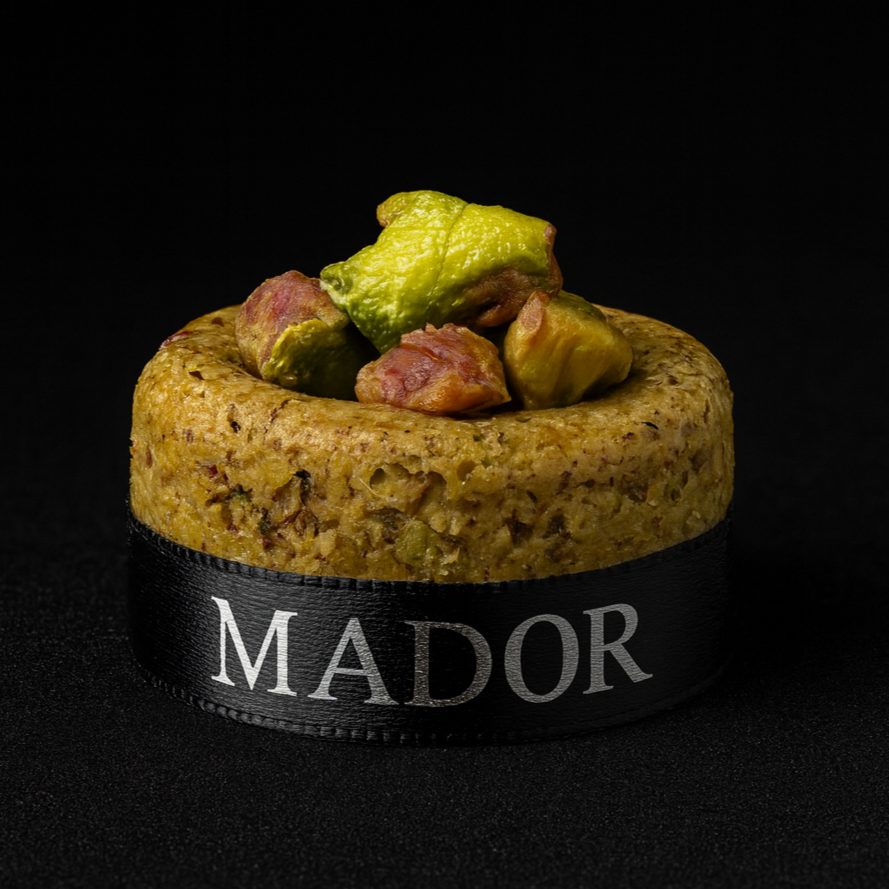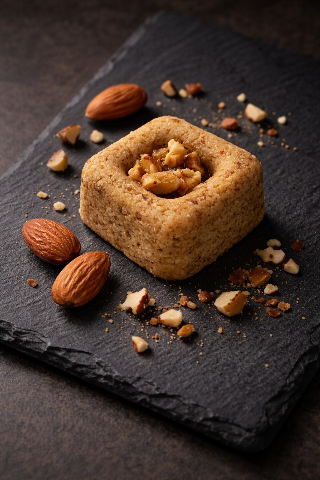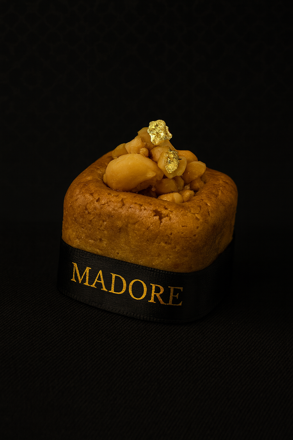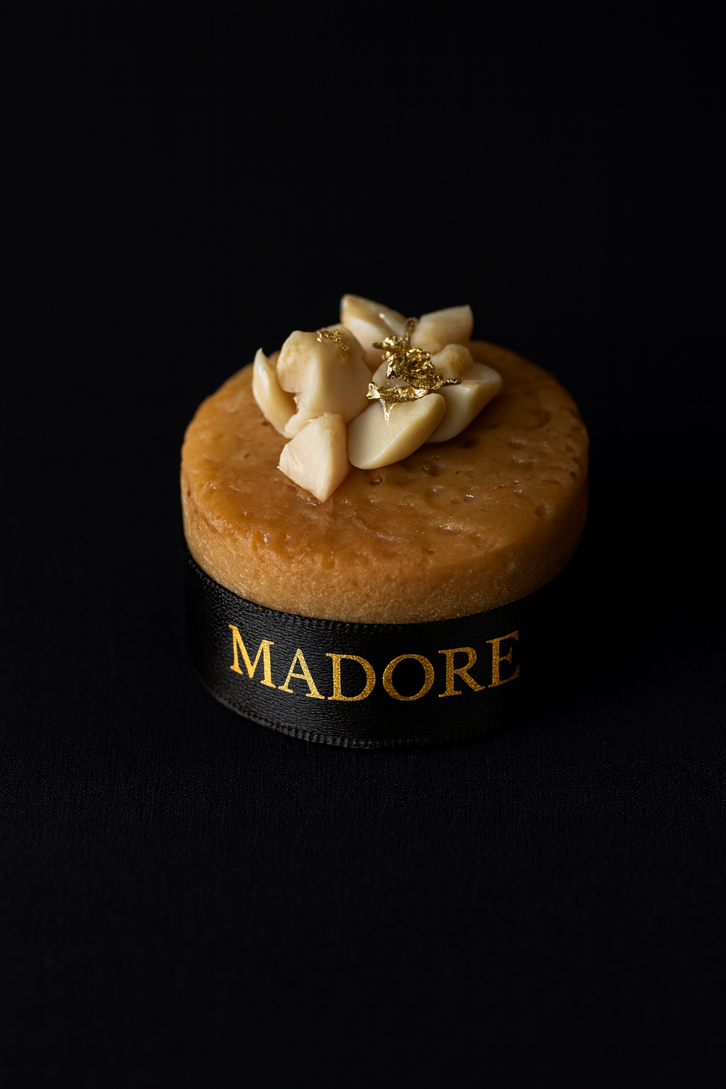 Un pur trésor de gourmandise, façonné entièrement à base d’amandes raffinées. Sa texture fondante et délicatement granuleuse révèle toute la richesse du fruit sec, sublimée par une fine couche de fruits croquants caramélisés sur le dessus. À chaque bouchée, l’intensité de l’amande se mêle à une douce note torréfiée et légèrement miellée, offrant un équilibre parfait entre moelleux, croquant et finesse aromatique.