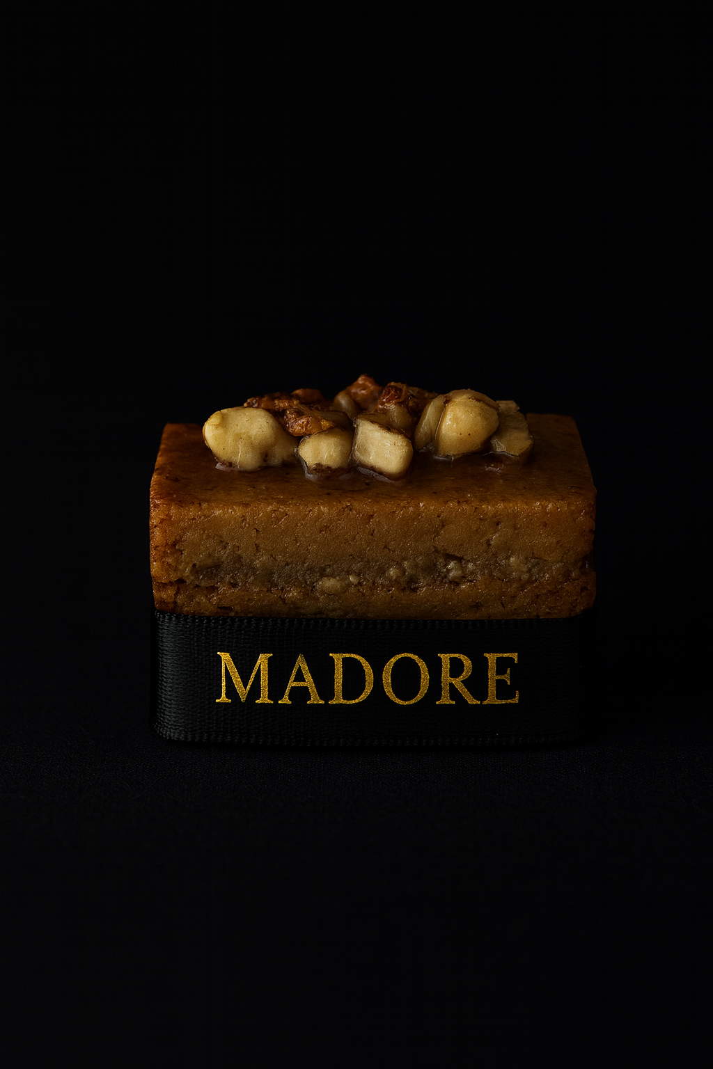 Un carré de gourmandise noble, confectionné exclusivement à partir de noisettes entières soigneusement sélectionnées. Sa texture dense et fondante met en valeur l’arôme authentique et naturel de la noisette, relevé par une subtile note torréfiée qui enveloppe le palais. Chaque bouchée révèle une intensité généreuse, où la pureté du fruit sec se transforme en une expérience riche, élégante et inoubliable.
